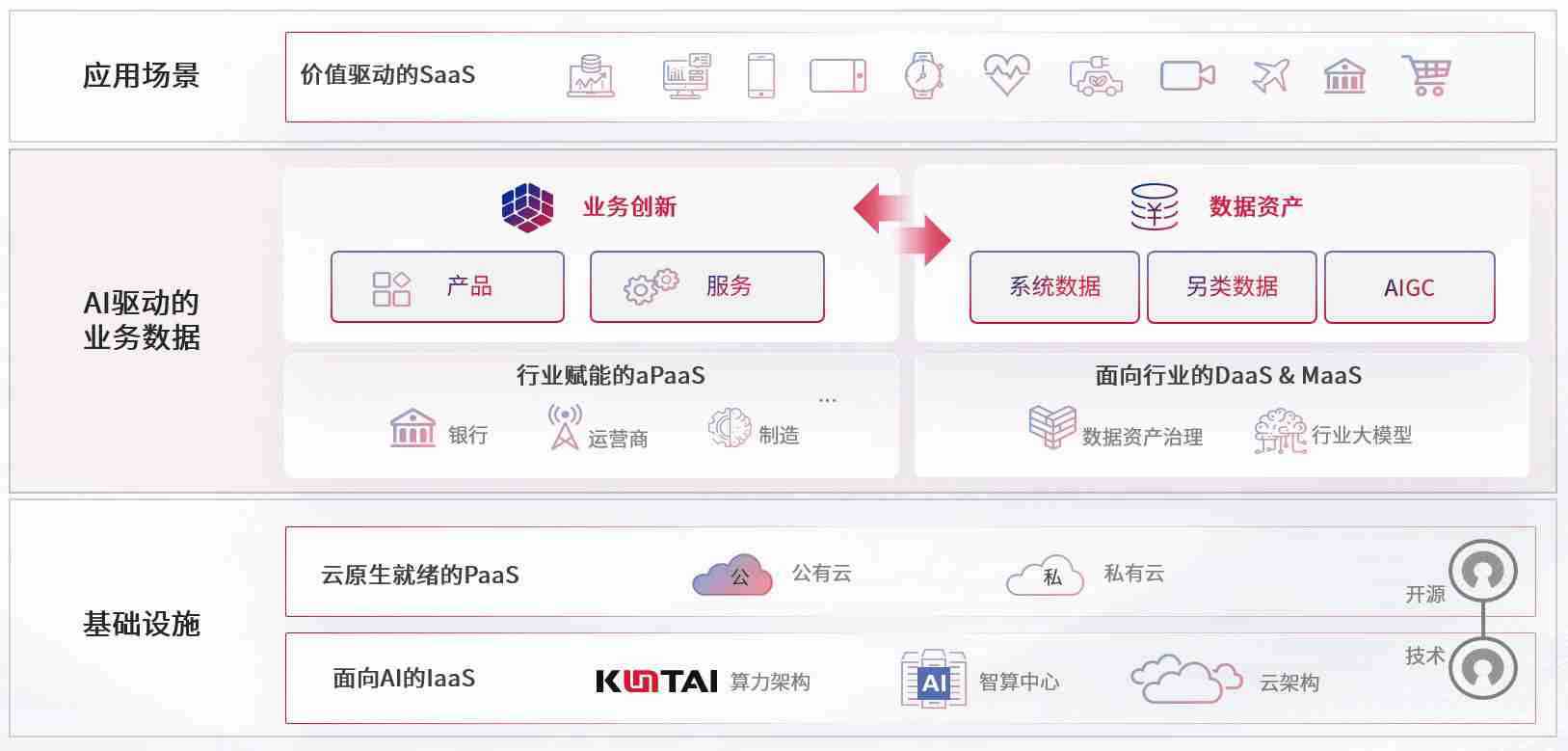 数字时代,,,围绕企业数字化转型的关键要素,,,,z6mg·人生就是博数码开创性的提出数云融合战略和技术体系框架,,,,着力在云原生、、、数字原生、、AI原生和信创产业上架构产品和服务能力,,,,为处在不同数字化转型阶段的快消零售、、汽车、、、金融、、、医疗、、政企、、教育、、、、运营商等行业客户提供泛在的敏捷IT能力和融合的数据驱动能力,,,构建跨界融合创新的数字业务场景和新业务模式,,助力企业级客户建立面向未来的核心能力和竞争优势,,,,全面推动社会的数字化、、智能化转型升级。。。。